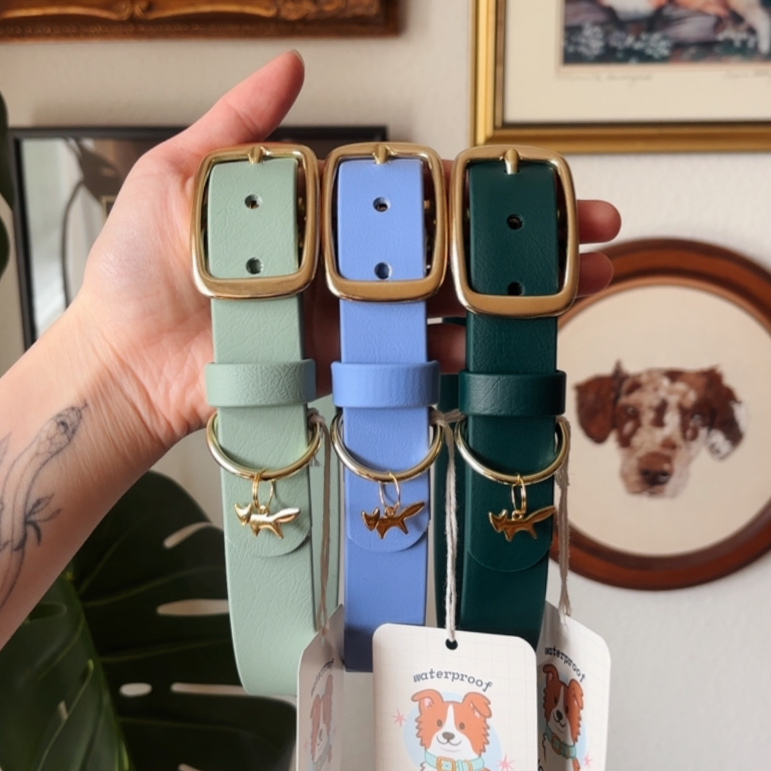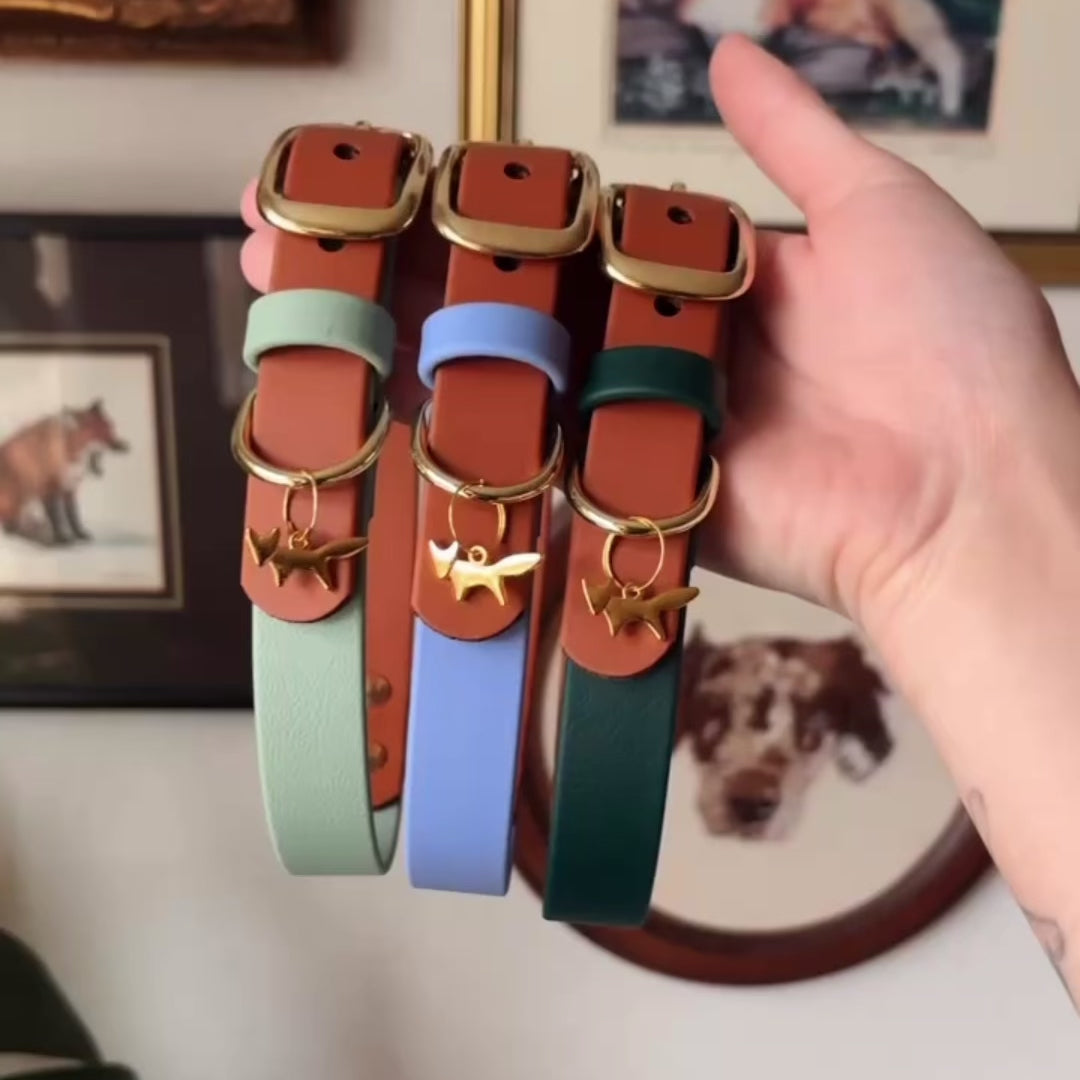 Choose between a classic Full Slip Collar or our pictured Hybrid Leather/Waterproof Buckle Collar for the perfect blend of form and function. 🤌