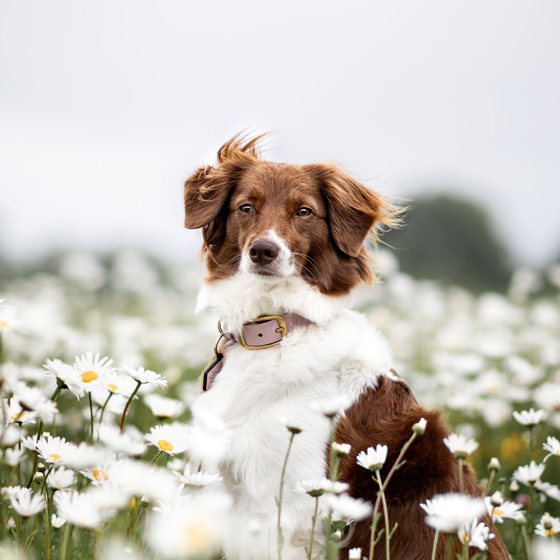 • Solid Brass Hardware (buckle, rivets) & Brass-Plated D-Ring for attaching tags, charms, or a leash