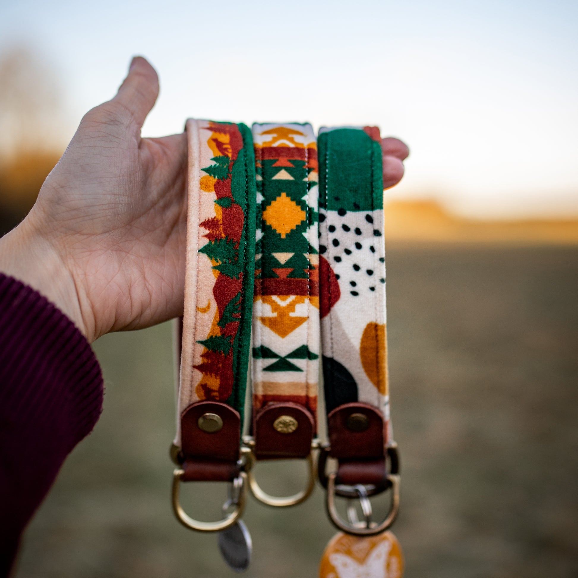 FoxMoth's exclusive designs are printed on upholstery quality velvet fabric and paired with premium vegetable tanned leather making these collars buttery soft and fur friendly. No matter how thin or thick your pup's coat, they'll be serving style in ultimate comfort! βοΈ